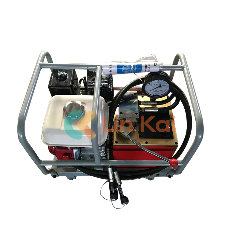 Należy pamiętać, że stacje pomp linowej prasy hydraulicznej nie robią nic więcej, jak tylko dostarczają energię do innych urządzeń lub sprężarek hydraulicznych.  Silnik benzynowy to Honda GX160.